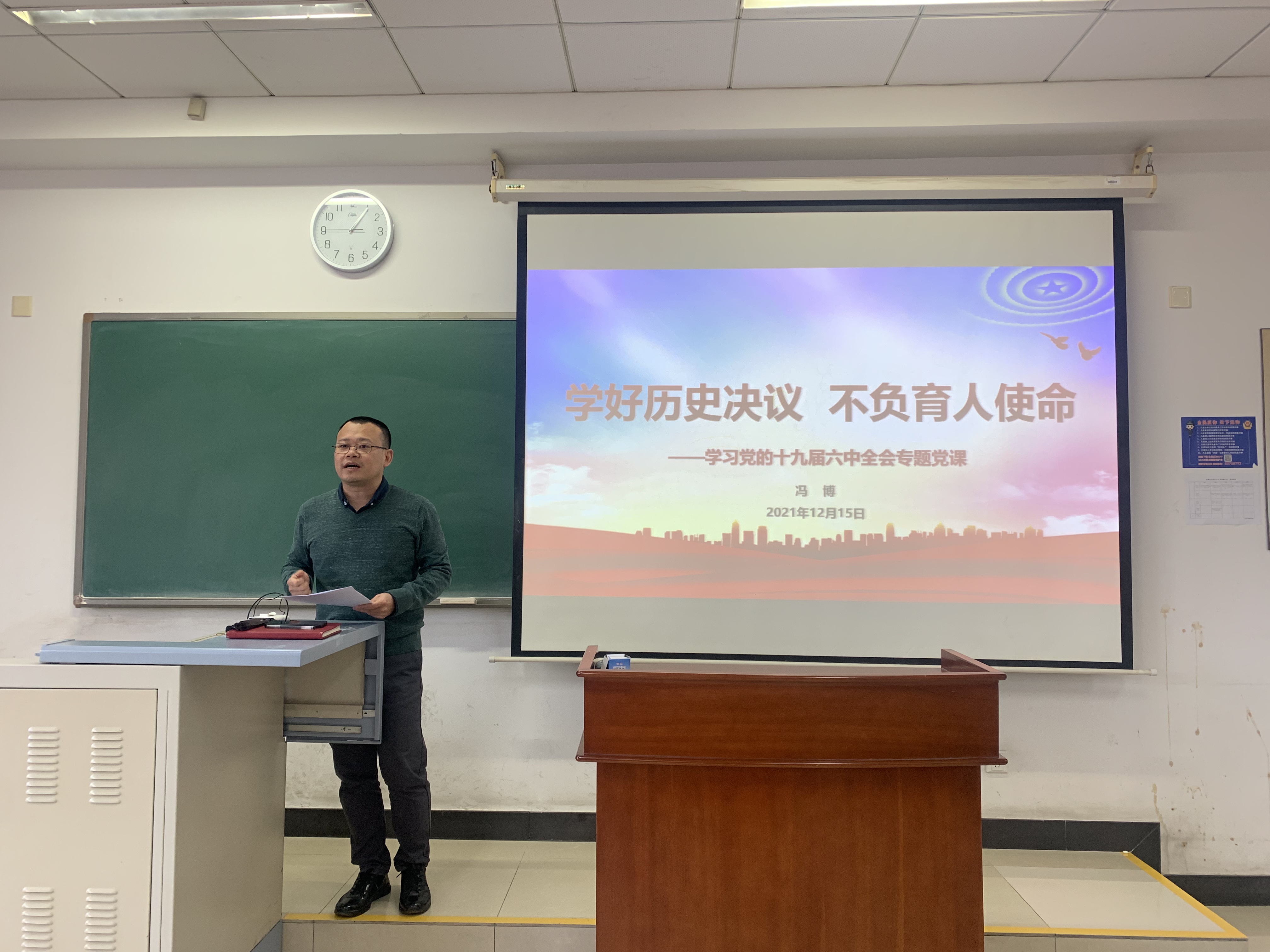 为进一步深入学习贯彻党的十九届六中全会精神,逼喱逼喱 党委于12月15日下午组织专题学习,党委书记冯博以“学好历史决议,不负育人使命”为题讲了专题党课。