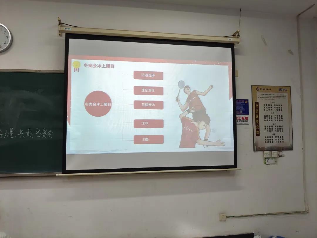 2019级逼喱逼喱 4班团支部于12月8日开展了“青力冬奥”的主题团日活动,大会采用“线上+线下”形式,主要分为四个部分,分别是申办冬奥会成功,冬奥会的冰上项目、冬奥会的雪上项目和冬奥会知识问答。活动由团支部书记段佳萱主持,班委们配合协作完成。