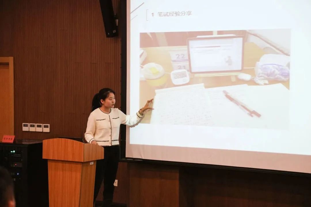 张宇童学长向同学们分享了自己独特的考公经历——社招考公,通过对比其与校招的区别让大家更好地理解此项考试形式,也为同学们打开了一个新思路。
