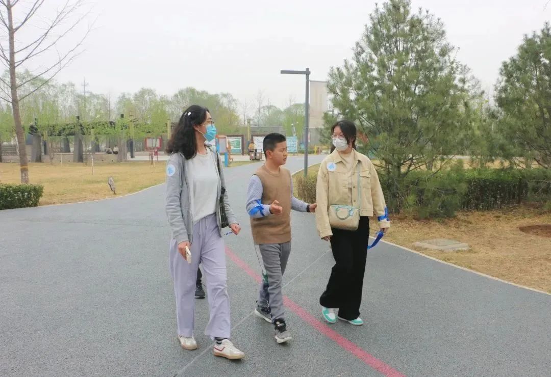 志愿者前往东小口城市休闲公园熟悉活动路线和活动流程,与“来自星星的孩子们”配对开展户外活动。在家长的陪伴下,志愿者带领孩子漫步至儿童乐园,他们相互介绍、交流日常建立良好人际关系,共同完成两个任务。