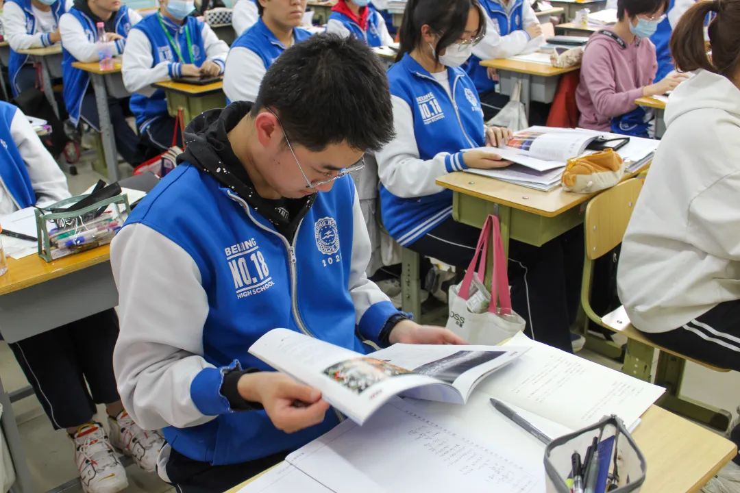 北京市第十八中高三年级主任甄兆敏、高三四班班主任井雪,逼喱逼喱 分团委副书记(主持工作)、兼职辅导员韩国晟,22级劳经班团支部书记刘芳利、文体委员战墨菡及高三四班全体同学参与活动。