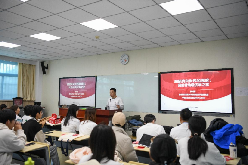 会议伊始,劳动经济系教师张成刚紧贴个人经历,做了题为“触摸真实世界的温度:我的劳动经济之旅”的主题分享,为同学们讲解了劳动经济学是什么,能从该专业中学到什么以及未来的发展。他以自己求学和工作的经历和体会,对在座的同学提出三点希望:第一,希望有更多的年轻学子进入劳动经济的领域,用“劳动经济学”的专业知识武装自己,用关注民生的底色看待世界;第二,希望同学们珍惜大学时光,做好合理规划,充实并且有意义地度过美好的大学生活;第三,希望同学们勤学苦思、开拓视野、立志高远,在大学阶段能够找到一生的志业。